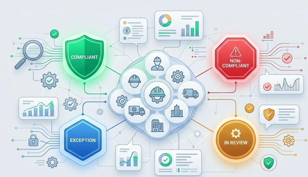 - Generate compliance status automatically
